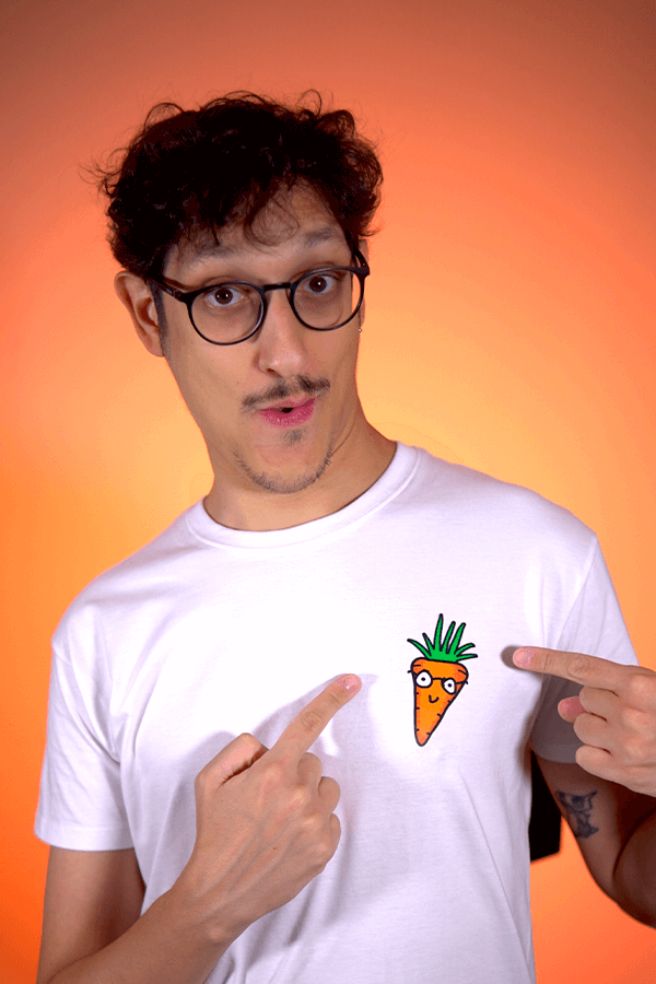 Ένα απλό καθημερινό T-shirt που μπορείς να φορέσεις με τα πάντα, με ένα μικρό καροτάκι στο στήθος. Unisex εφαρμογή για όλους και φτιαγμένο από 100% βαμβάκι